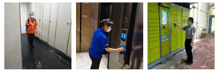 各服務(wù)中心加強園區(qū)消毒消殺工作,不放過每一個死角。對園區(qū)所有崗?fù)ぁ卧筇?、電梯轎廂、生活垃圾投放點等業(yè)主活動的重點部位開展不少于一次的消殺工作。并對電梯按鈕、門把手、樓梯扶手等重點細節(jié)處的額外消殺,為業(yè)主們營造一個安心的居住環(huán)境,保障業(yè)主的健康。